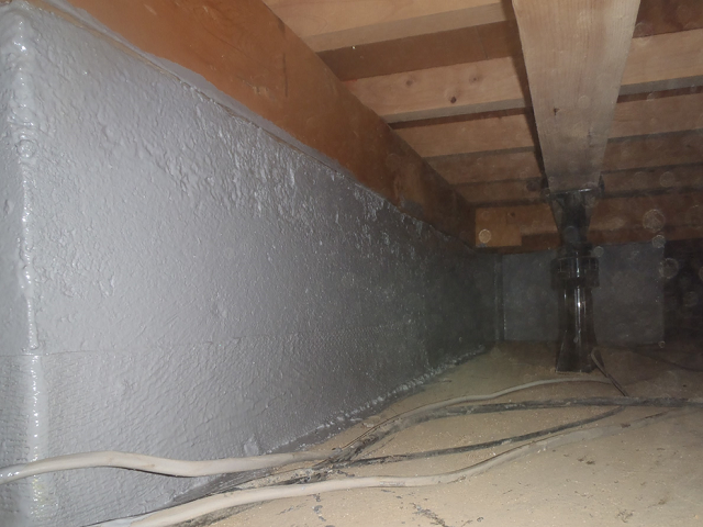 ・内側の内部基礎の劣化が進み、剥離がいたるところで見受けられました。剥離している部分を重点的に施工しました。湿気が多いお家でしたので、そのままだとひび割れの進行もあったかと思いますが、施工で、留めることができて安心です。