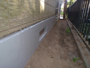 ・外側のひび割れが酷く見た目も気になっておりましたので、外回りの基礎コンクリートのひび割れ補修・補強工事を行いました。内部もひび割れが目立っているので、内部補強工事を今後してゆく予定となっております。