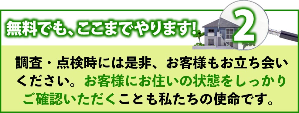 基本的にお客様には調査・点検時に立ち会っていただいてますが、点検報告書を作成し、改めてご報告いたします。